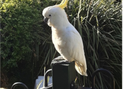 After a while the cockatoo squawks in a quiet tone, before spreading its large majestic wings to fly away.