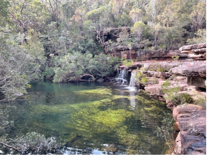 Our next destination was Winifred Falls Trail, one of the easy and not-so-popular trails at Royal National Park. The fall was barely three metres high, and the water wasn’t crystal blue. The water was green, not the murky green of the river ten minutes from home, but green and clear. Clear enough to see the large, shambolically-arranged rocks perched like sleeping crocodiles under the green tinge. It was nice, after some time, to finally see what lay at the bottom of a body of water.