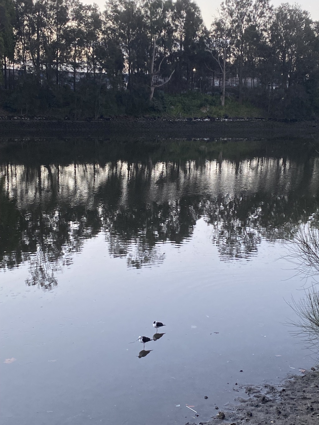 The walking-bicycle track along its south-eastern bank has been an escape during the COVID19 lockdown. So it was surprising to see numerous wading bird species in a short span of the canal one Sunday afternoon in winter. Pairs of Black-winged Stilts, Royal Spoonbills, Australian White Ibises, Masked Lapwings and Silver Gulls were feeding along a 30 metre stretch. Little Black Cormorants and Pacific Black Ducks were also feeding in the canal. Two weeks later, 3 Black-winged Stilts flew overhead as I crossed a bridge over the canal in Alexandria.