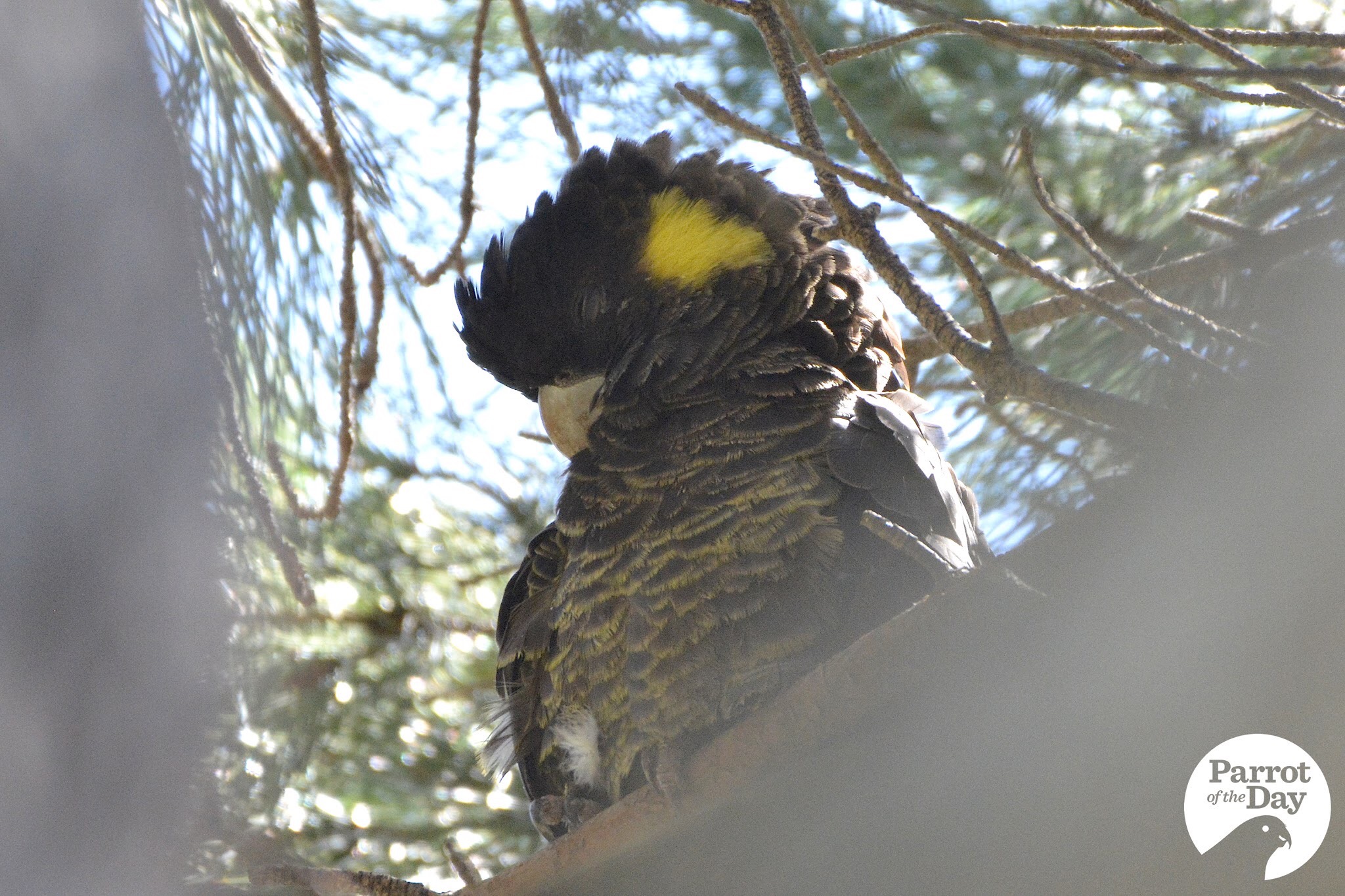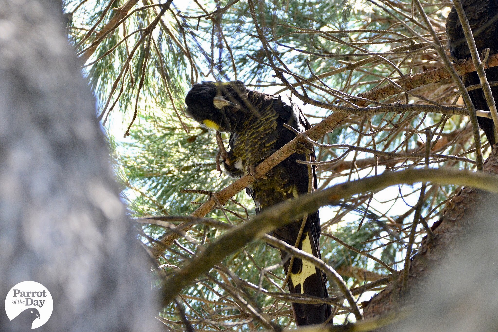 We were on a neighbourhood walk when we saw tell-tale signs: big pieces of pine cone, freshly chewed, strewn about the footpath. A quick scan up and around, and there they were in the tops of a few tall trees. One landed briefly on a front fence, another on a carport roof, before flying back up to the anonymity of the treetops. After a few minutes, by tacit agreement, they flew off out of sight.