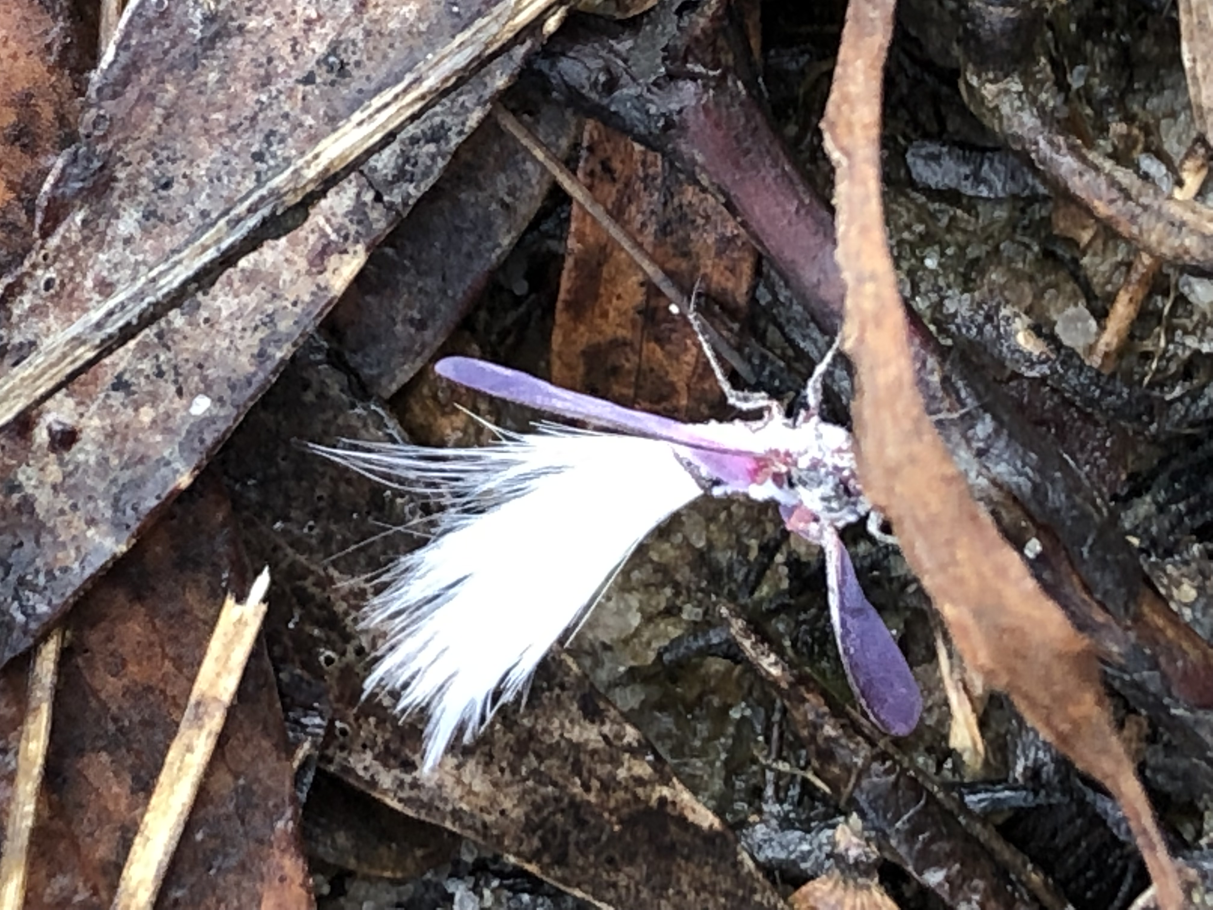 I needed a nature reboot and was more than content to just observe the different plant communities of the region. I’d just stepped through a large puddle when I noticed what appeared to be dandelion seeds floating toward me on the breeze. However, there was no breeze, and there are no dandelions deep within this Nature Reserve. Could milkweed seeds have made there way up from the valleys below? Or was it in fact the achenes of Doryphora sassafras which are likely present in the rainforest sections of the reserve, but not in the woodland I was walking through.