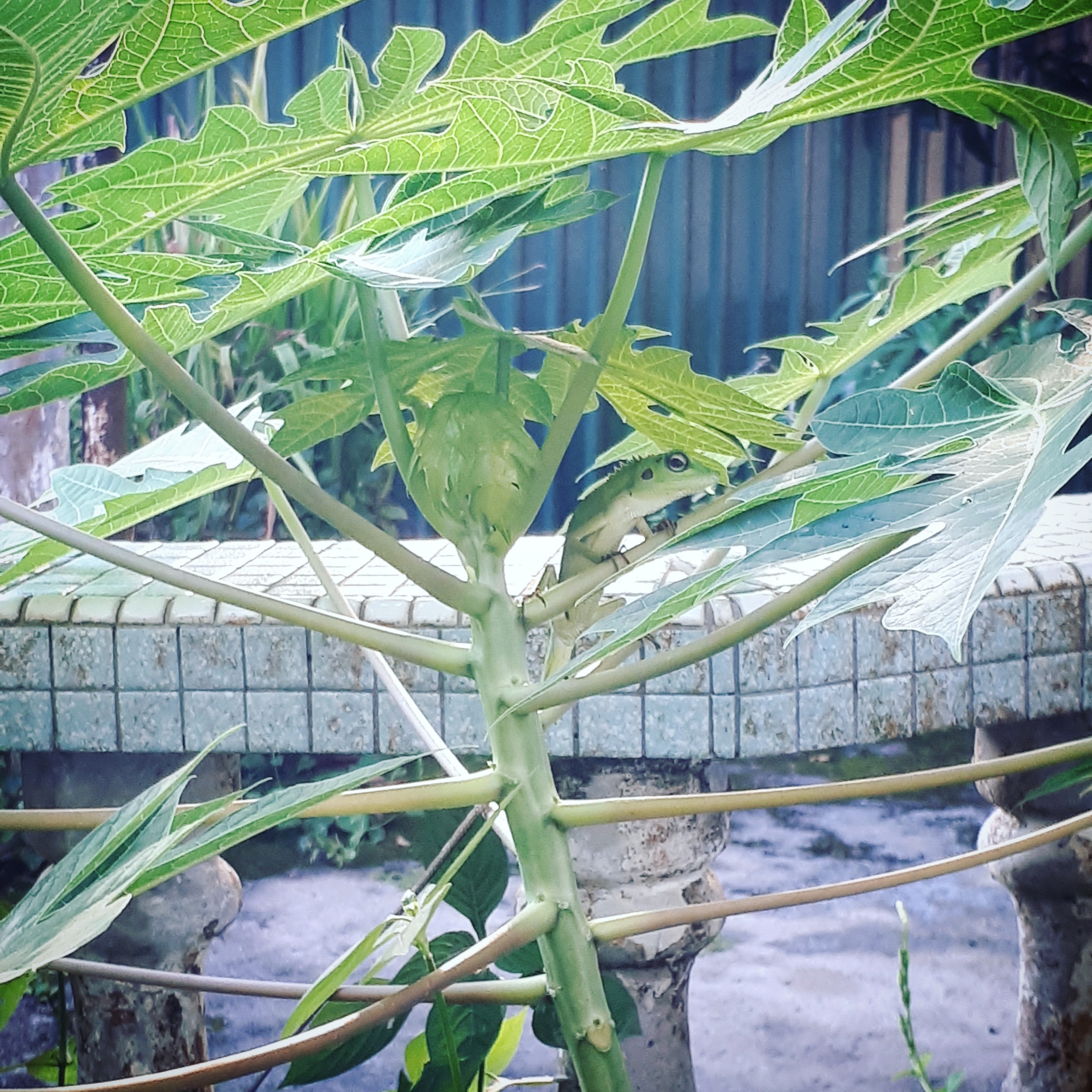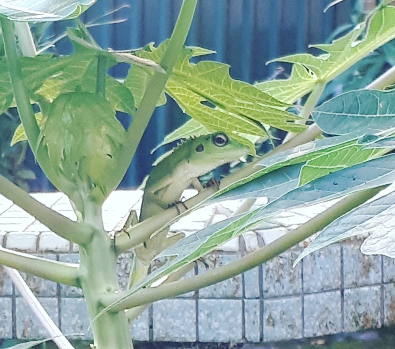 I had come and gone in the last decade whilst doing my postgraduate studies in the UK, each time leaving with more heartbreak with what has changed, deteriorated, and no longer recognisable from my childhood. On this day when I spotted this green crested lizard (Bronchocela cristatella) perched on a wild papaya sapling, I was crouched down, rather forlornly, unable to shut my ears to the incessant clanging from the car workshop next-door. The lizard and I, we were motionless in apparent solitude, lost in our thoughts, until my eyes cleared, readjusted and focused on its slender green body. We stared at each other, unblinking. And it seemed for a moment that the borders between my past and present, collapsed and I was home again once more.