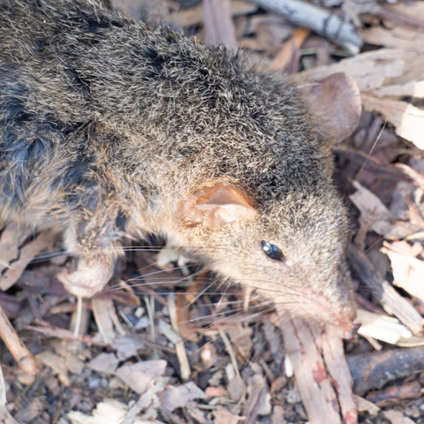 Being a bird-watcher I’m looking for that telltale rustle in a thick bush and I keep an ear out for bird-calls in the forest canopy. Occasionally I can hear something scratching around in the leaf litter on the forest floor. That’s what I was looking for when I saw this creature. OK – it’s dead…. but it is interesting. Certainly not a mouse or rat. It would fit into the palm of my hand if I dared pick it up. The tail is about as long as the body. The fur appears fine and silky: brown along the back but pale underneath. The ears are quite large and rounded with a clearly visible notch on the edge. And I can just see the sharp teeth which would be effective in munching the insects, spiders, cockroaches and centipedes it feeds on.