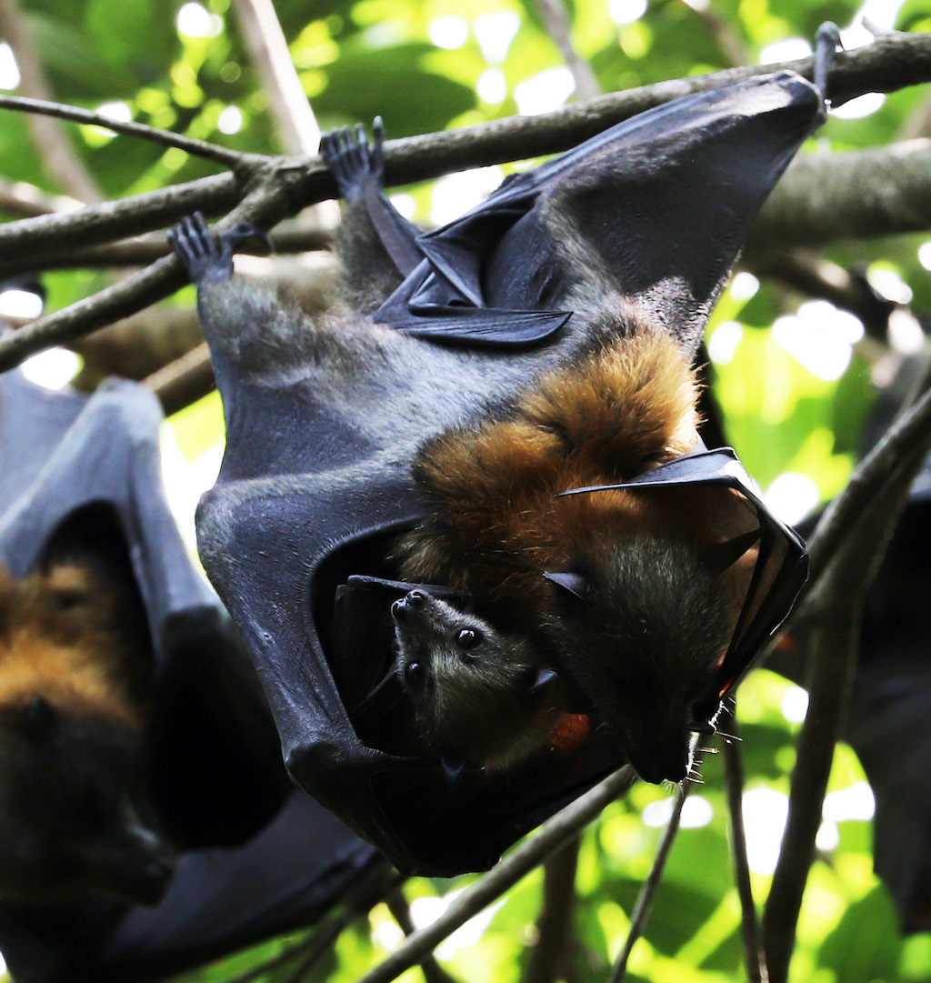 Grey-headed flying-foxes thrive on social connections and are one of the few animals who will willingly initiate eye contact with equally-curious humans. These mums and bubs were observed at Macquarie Fields and Wolli Creek, Sydney.