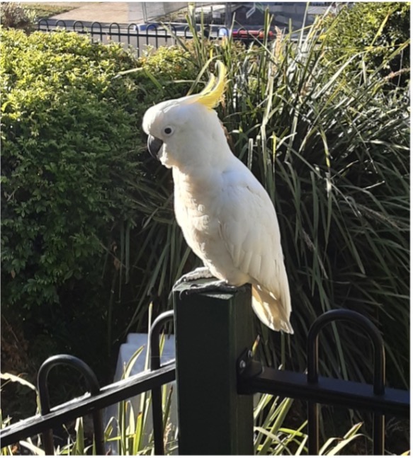 My eyes widen. A sulphur crested cockatoo was waiting for me. I had never seen one so close, let alone within a foot of my front door.