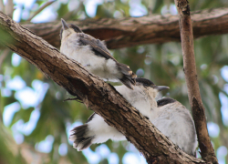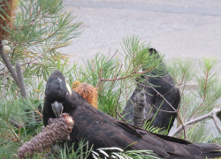 A knock at the front door interrupts a phone call. "Do you know there are black galahs in your front yard?"