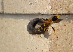 I love finding clusters of tiny earthenware urns attached to the walls of our house... They are signs that the great artisan potters of the insect world are at work in our garden.