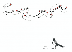 Then on the grass in front of me, a willy wagtail hops. Pauses. Shakes its tail feathers, hops again.