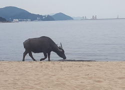 One day me and my friend Jack were spending a sunny Sunday at the beach. As were the buffalo. The herd sprawled in the sand sunbathing, some of the youngsters splashing playfully in the shallows.