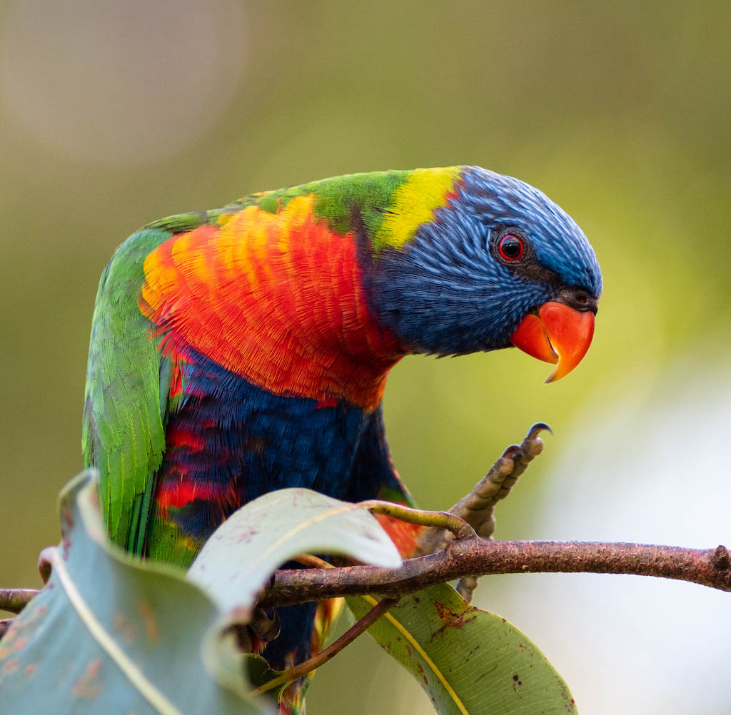 The rainbow lorikeets had followed us. Resplendent up in our big new tree!