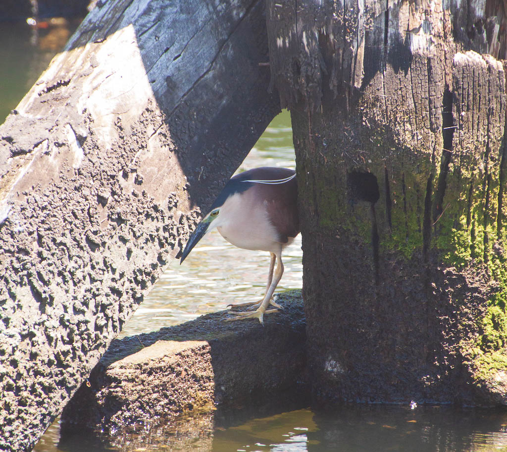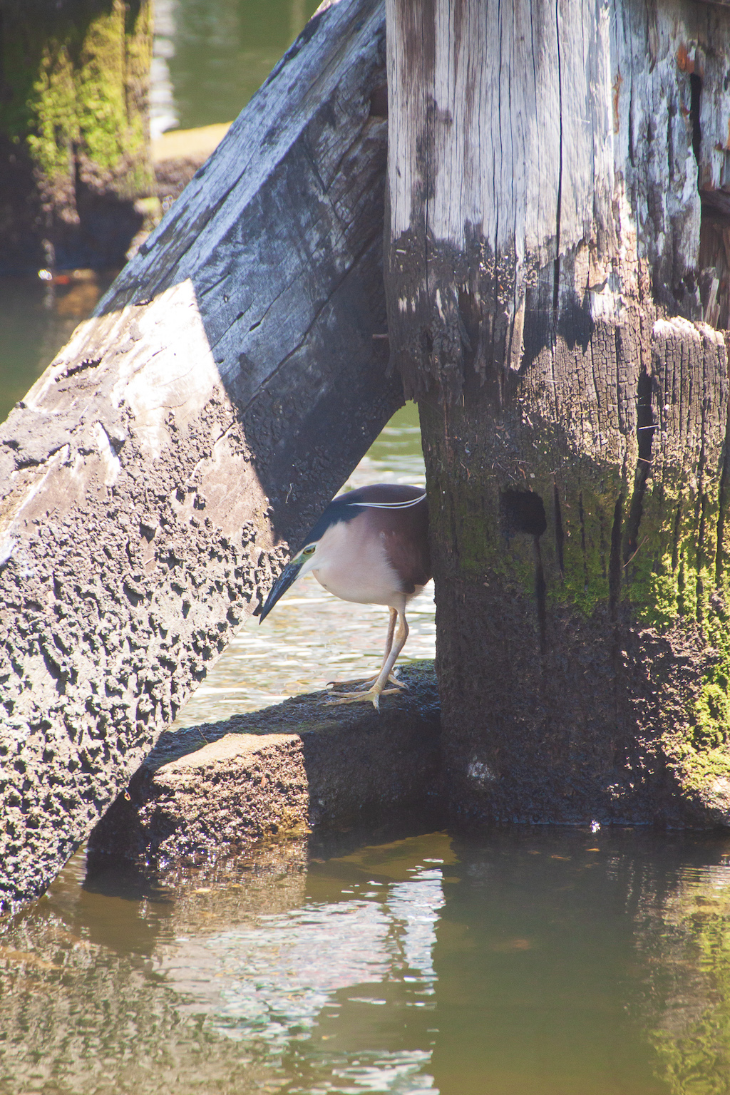 Walking along the polluted, degraded waterfront I soon noticed what others didn’t; my new neighbourhood has its own hidden bird, the Nankeen Night Heron. A regular stream of humans pass unaware of its presence amongst the rotting bollards. To me it became a new friend who I always look out for. I now know at least three of these beautifully sleek birds live down there. Whether they are noticed or not, it’s important to me that they continue to live there.
