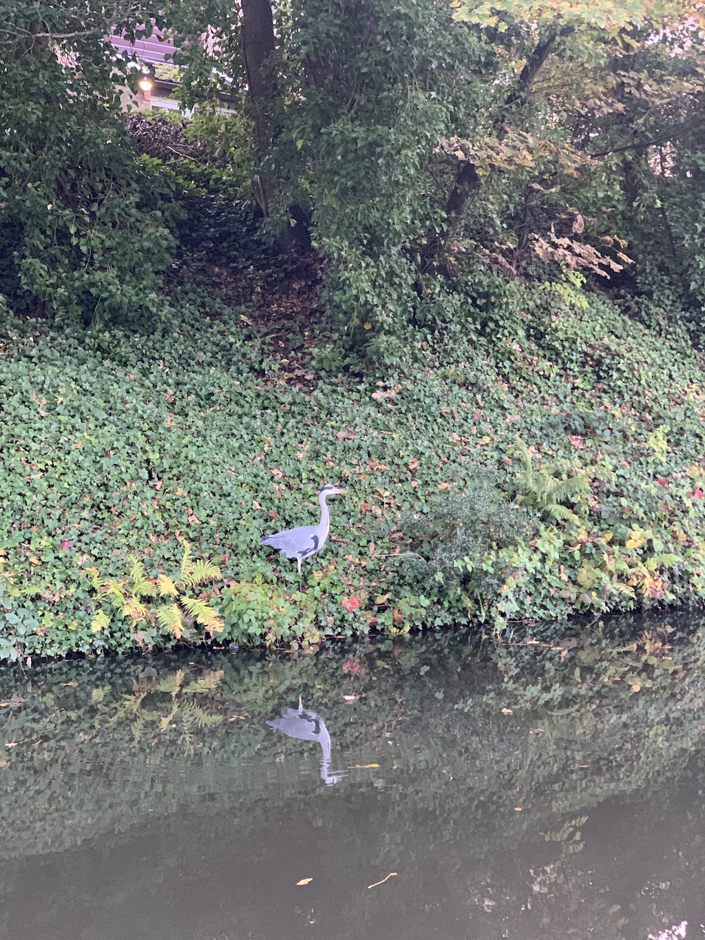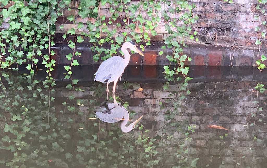 In Birmingham, there is a stretch of canal between the city and the university that is walked and cycled daily by commuters. On one side is a path and on the other are trees, shrubs, grasses, and flowers cordoned off by high metal fences. Walking along the canal in Autumn 2019 – a walk I had been doing for two years – I was suddenly stopped by a magnificent heron.